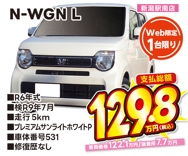 支払総額129.8万円/R6年式/検R9年7月/走行5km/プレミアムサンライトホワイトP/新潟駅南店