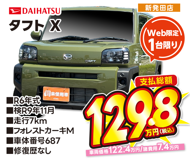 支払総額129.8万円/R6年式/検R9年8月/走行8km/トレッドカーキM/新津本店