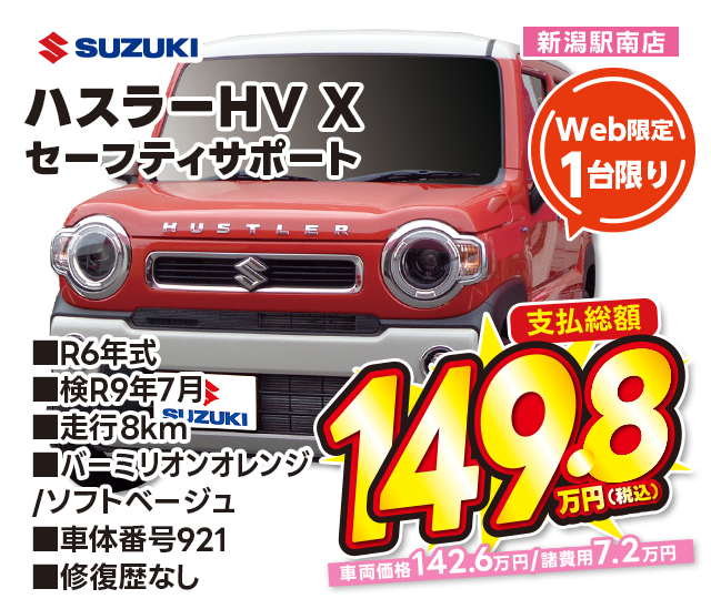 支払総額149.8万円/R6年式/検R9年7月/走行8km/ツートン(バーミリオンオレンジ/ソフトベージュ)/新潟駅南店