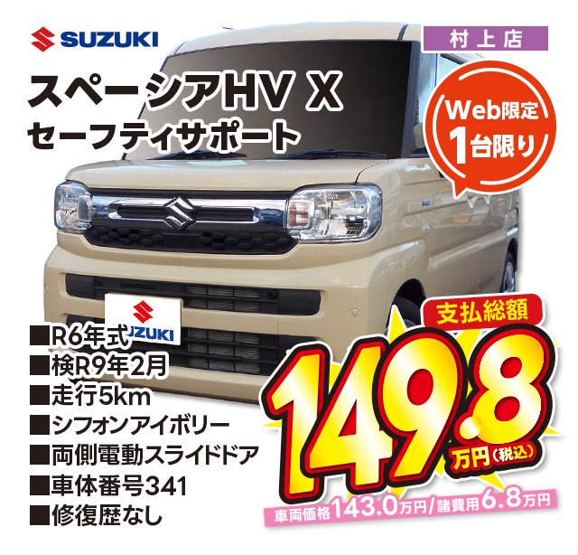 支払総額149.8万円/R6年式/検R9年2月/走行5km/シフォンアイボリー/両側電動スライドドア/村上店