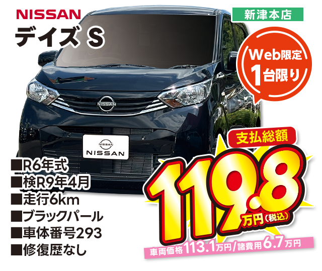 支払総額119.8万円/R6年式/検R9年4月/走行8km/ブラックパール/新津本店