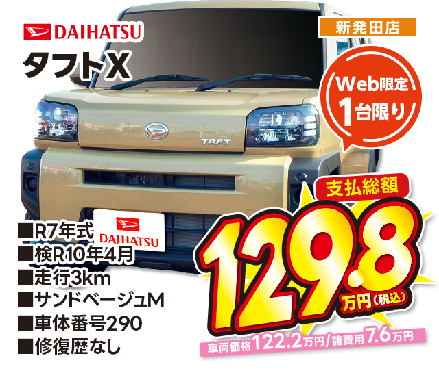 支払総額129.8万円/R7年式/検R10年4月/走行3km/サンドベージュM/新発田店