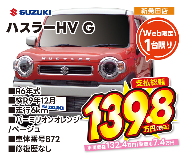 支払総額139.8万円/R6年式/検R9年12月/走行6km/ツートン(バーミリオンオレンジ/ソフトベージュ)/新発田店