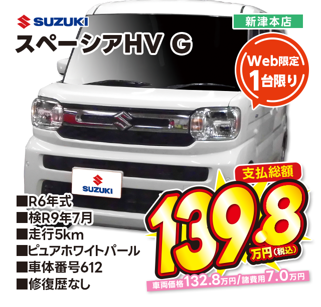 支払総額139.8万円/R6年式/検R9年7月/走行5km/ピュアホワイトパール/新津本店