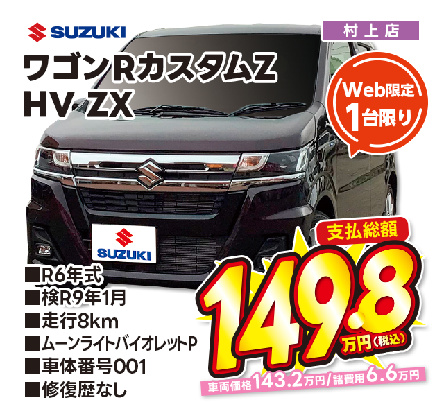 支払総額149.8万円/R6年式/検R9年1月/走行8km/ムーンバイオレットP/村上店