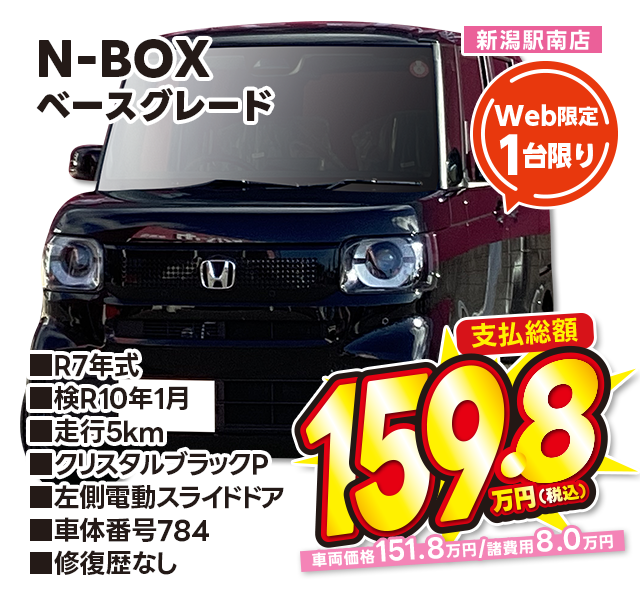 支払総額159.8万円/R7年式/検R10年1月/走行5km/クリスタルブラックパール/左側電動スライドドア/駅南店