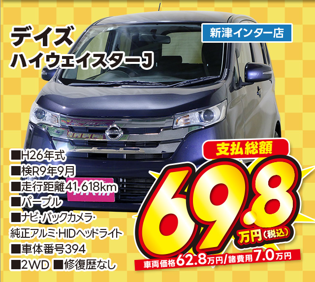 支払総額89.8万円/H29年式/検R9年8月/走行5.3万km/ブラック/4WD専門新津店