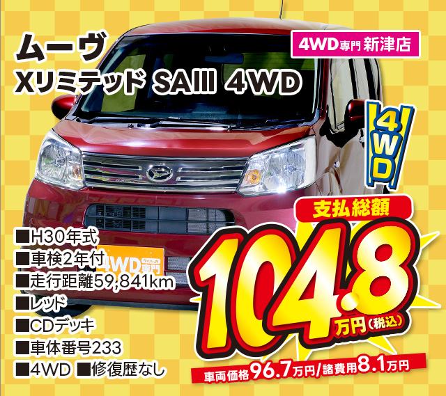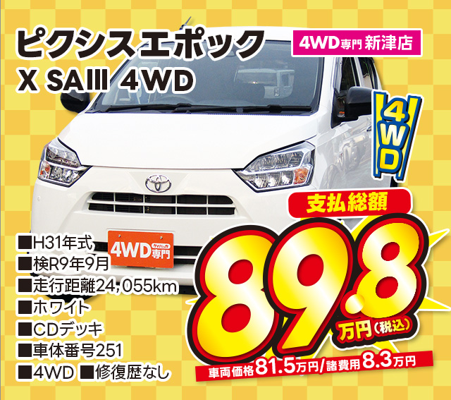 支払総額109.8万円/R3年式/車検2年付/走行4.4万km/パール/4WD専門新津店