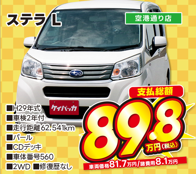 支払総額74.8万円/H29年式/車検2年付/走行4.3万km/ブルー/空港通り店