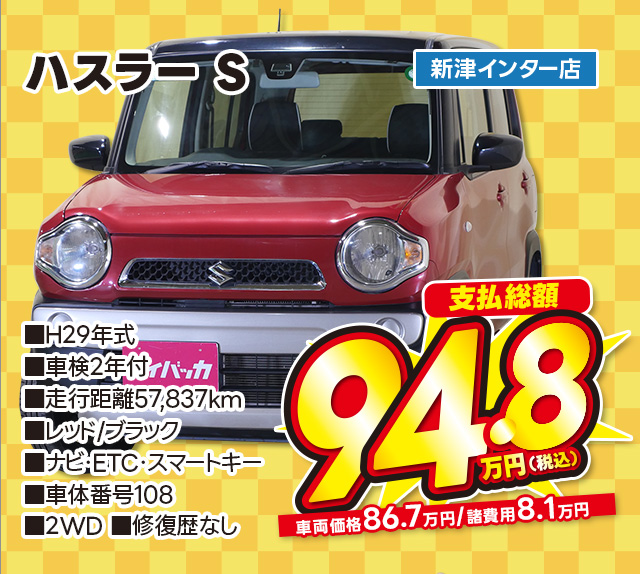 支払総額94.8万円/H29年式/車検2年付/走行5.8万km/ツートン(レッド/ブラック)/新津インター店