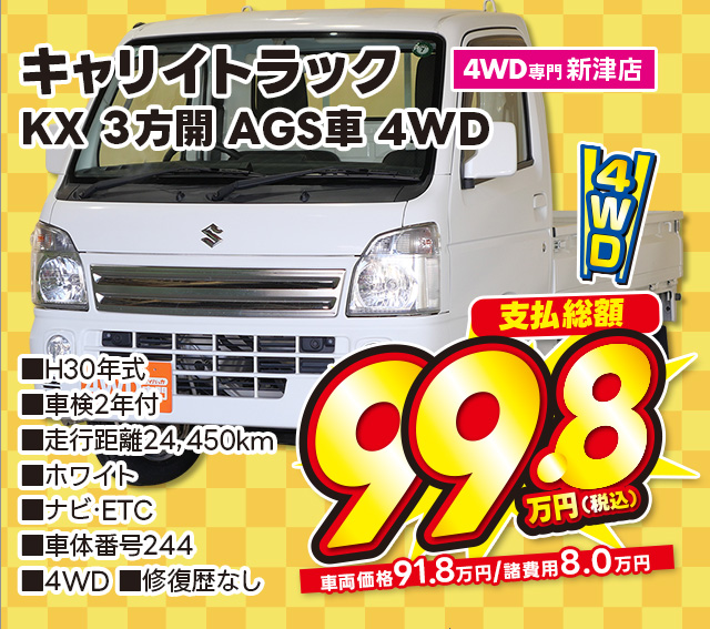 支払総額99.8万円/H30年式/車検2年付/走行7.1万km/オフブルー/4WD専門新津店